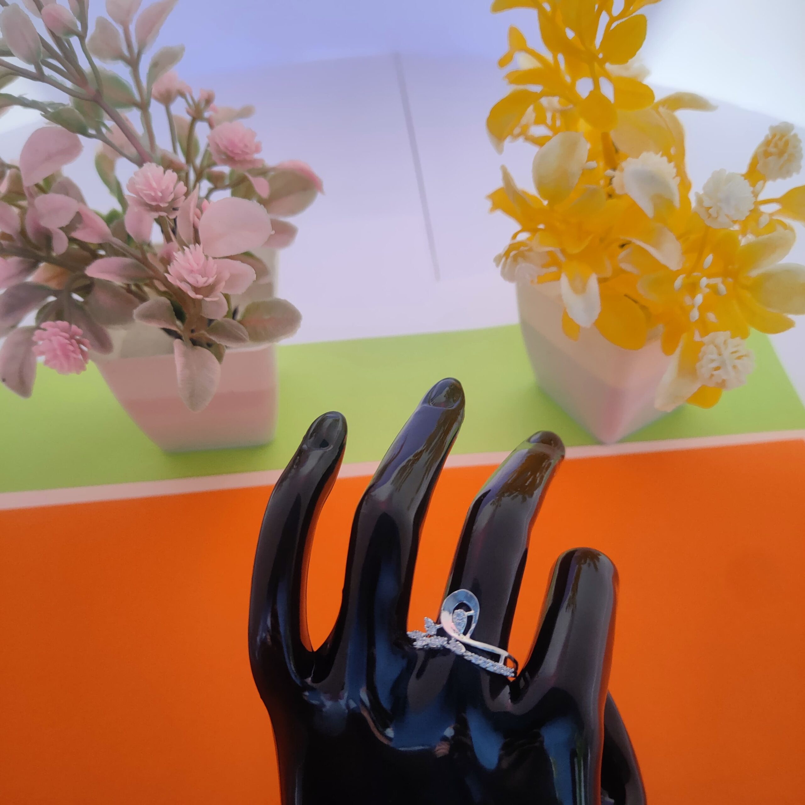 The Delicate Leaf Accent Silver Ring is a graceful piece inspired by natural leaf forms and soft curves. Crafted in high-quality 92.5 sterling silver, this ring features finely shaped leaf motifs adorned with sparkling cubic zirconia stones. The design flows seamlessly over a solid, continuous band, offering both elegance and durability.