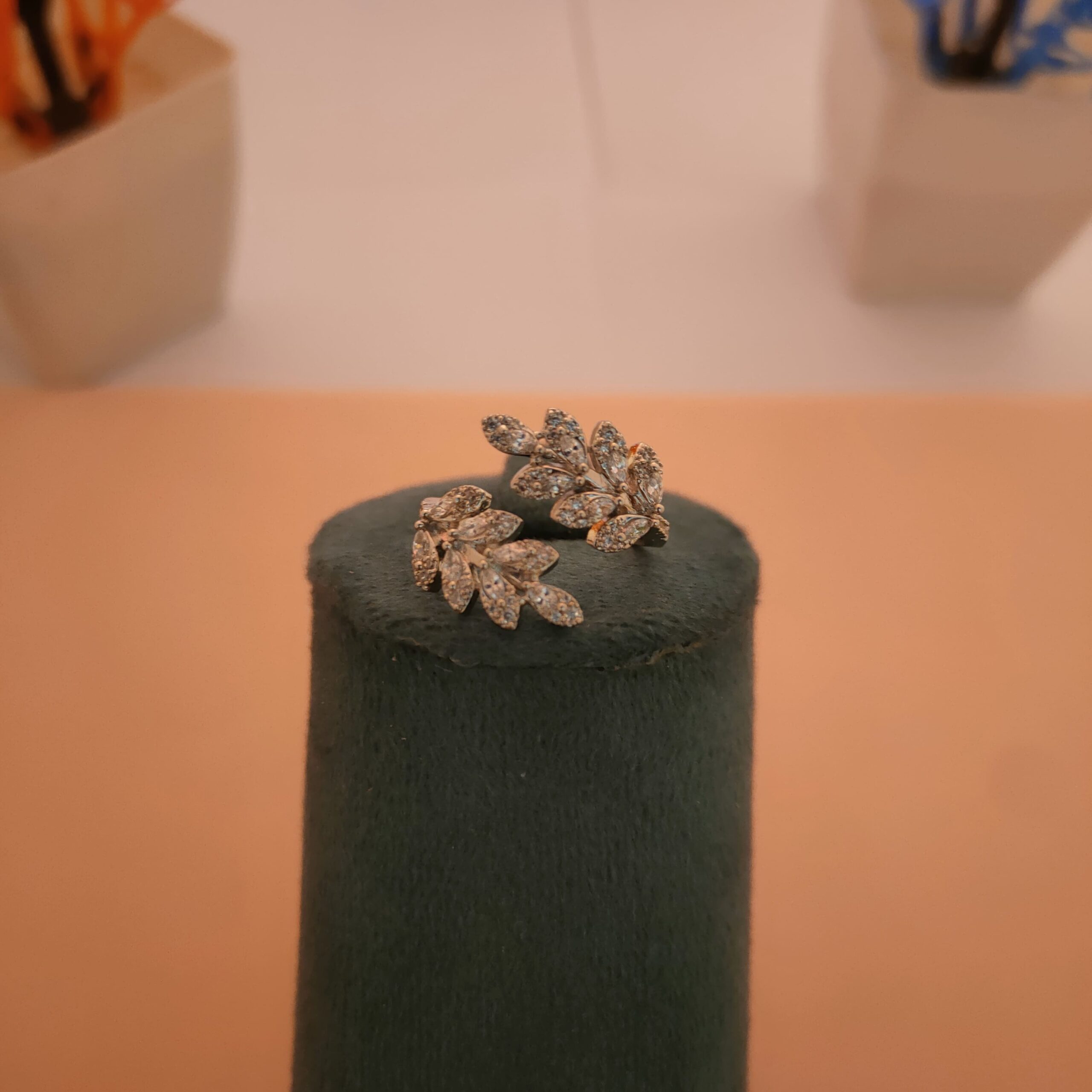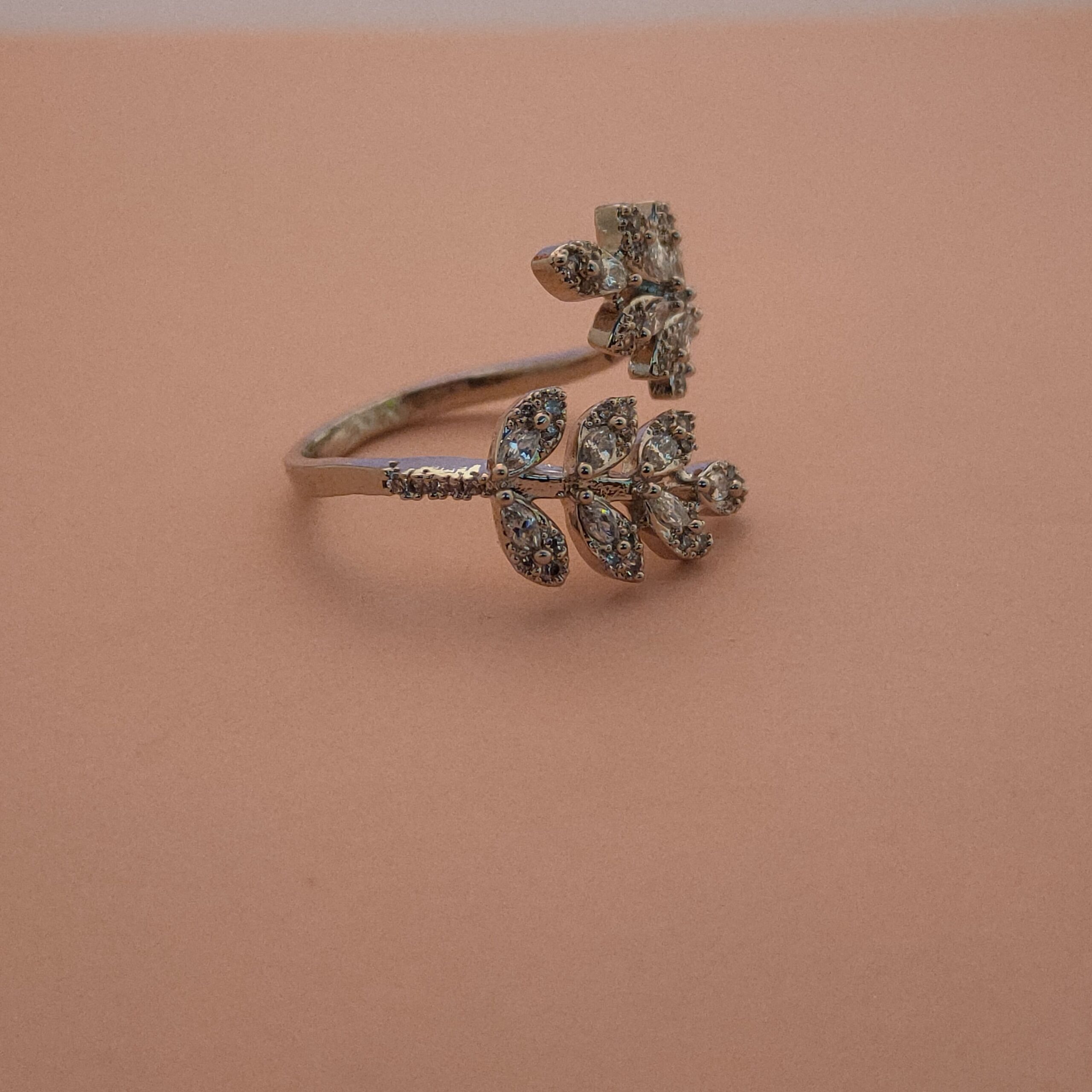 This elegant open band ring features a delicate floral-inspired design crafted with marquise-cut cubic zirconia stones. Made from premium 92.5 sterling silver, the ring showcases a graceful open-end structure that offers a comfortable and adjustable fit. The sparkling leaf-like arrangement adds a soft yet luxurious charm, making it perfect for everyday elegance or special occasions. Designed for durability and long-lasting shine, this piece reflects refined craftsmanship and timeless beauty.