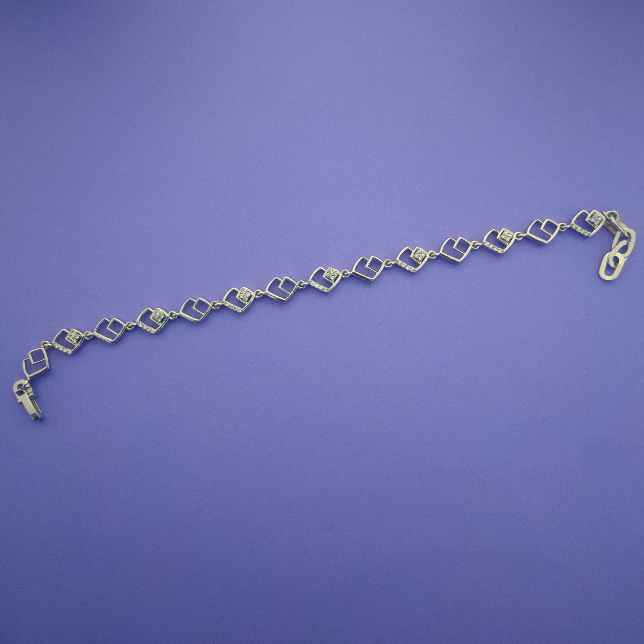 This elegant square link bracelet is beautifully crafted from high-quality 925 sterling silver, offering a perfect balance of modern design and timeless sophistication. Featuring a series of open geometric square links, the bracelet is accented with carefully set AAA cubic zirconia stones that add a subtle sparkle without overpowering the design. The clean lines and structured pattern give it a contemporary look, making it suitable for both casual and formal wear.