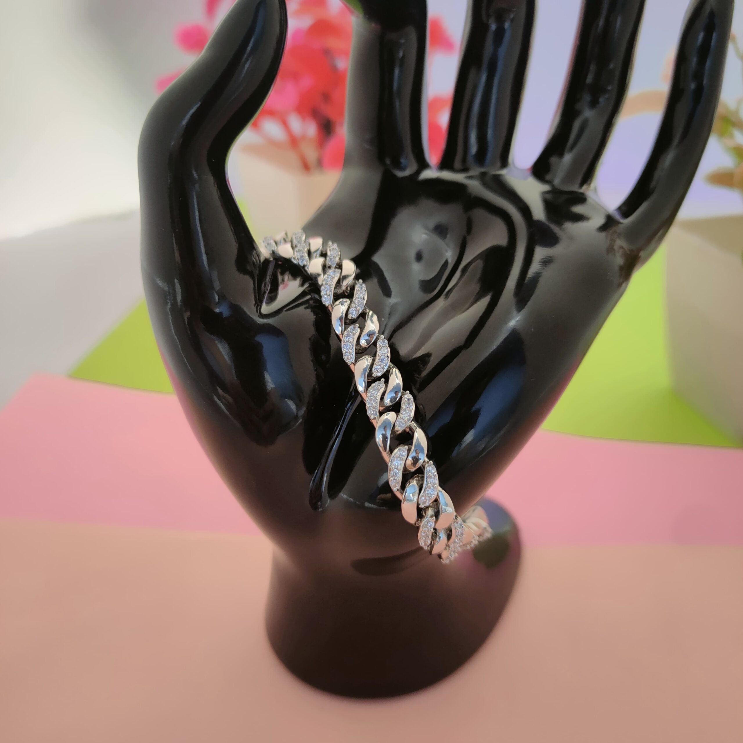 This Men’s Cuban Link Sterling Silver Bracelet features a classic curb chain design enhanced with stone-accented links that add a refined sparkle without overpowering the bold look. Crafted from 92.5 sterling silver, the bracelet offers a solid, premium feel and a high-polish finish.