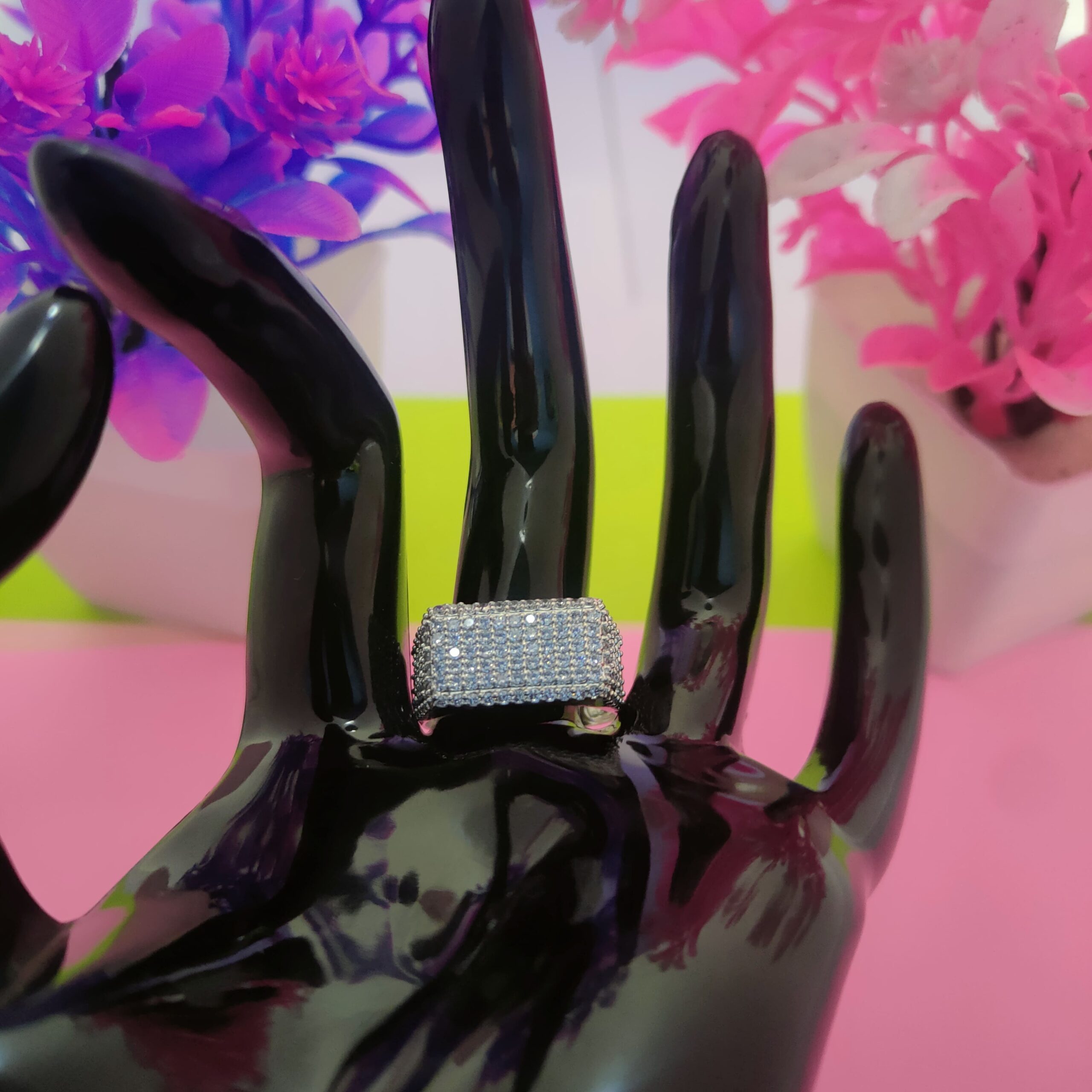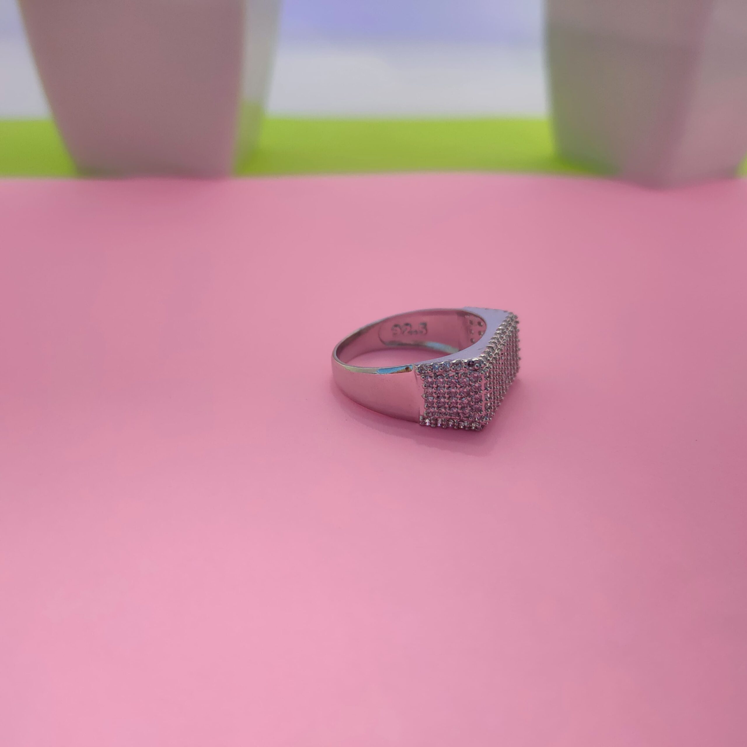 This bold statement ring features a wide band design fully adorned with shimmering pavé-set cubic zirconia stones. Crafted from premium 92.5 sterling silver, the ring offers a solid build with a high-polish finish that enhances its brilliance. The structured wide surface delivers a luxurious and confident look while maintaining a comfortable fit for regular wear. Perfect for parties, festive occasions, or standout styling, this ring blends durability with refined craftsmanship.